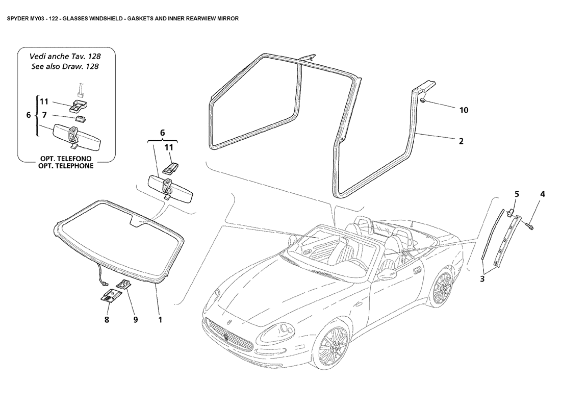 122 Glass Windshield - Gaskets And Inner Rear View MirrorKlik op het plaatje voor een grotere versie |